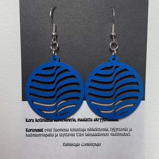 Laserilla teemme myös kotimaisesta koivuvanerista kakunkoristeita, korvakoruja sekä muita tuotteita. Vaneri voidaan käsitellä värillä, siihen voidaan laittaa väritön uv-suojaus vesiohenteisella Osmo Colorin Uviwax-suojavahalla. Pinta on vaaratonta ihmisille, eläimille ja kasveille.