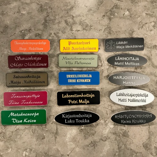 Nimineulat, pienet kyltit yms. voidaan myös toteuttaa laserilla.
